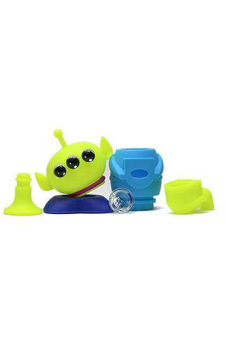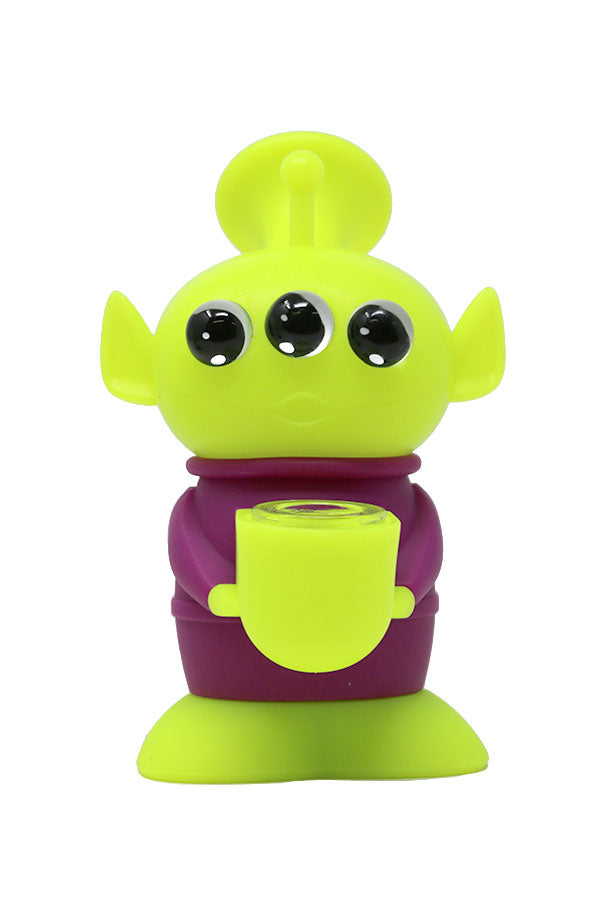Befriend this little 3-eyed alien and elevate your smoking experience. All parts can be disassembled. The flexible silicone material allows for easy cleaning of the intricate parts that make this green guy so adorable.